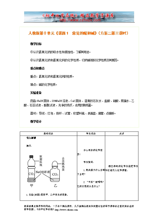 人教版《第十单元课题1 常见的酸和碱》教案(方案二第三课时)