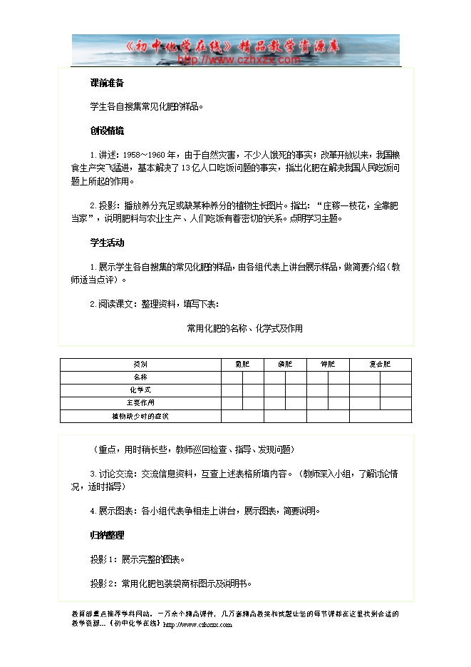 人教版九年级下册《第十一单元课题2 化学肥料》教案(方案一)