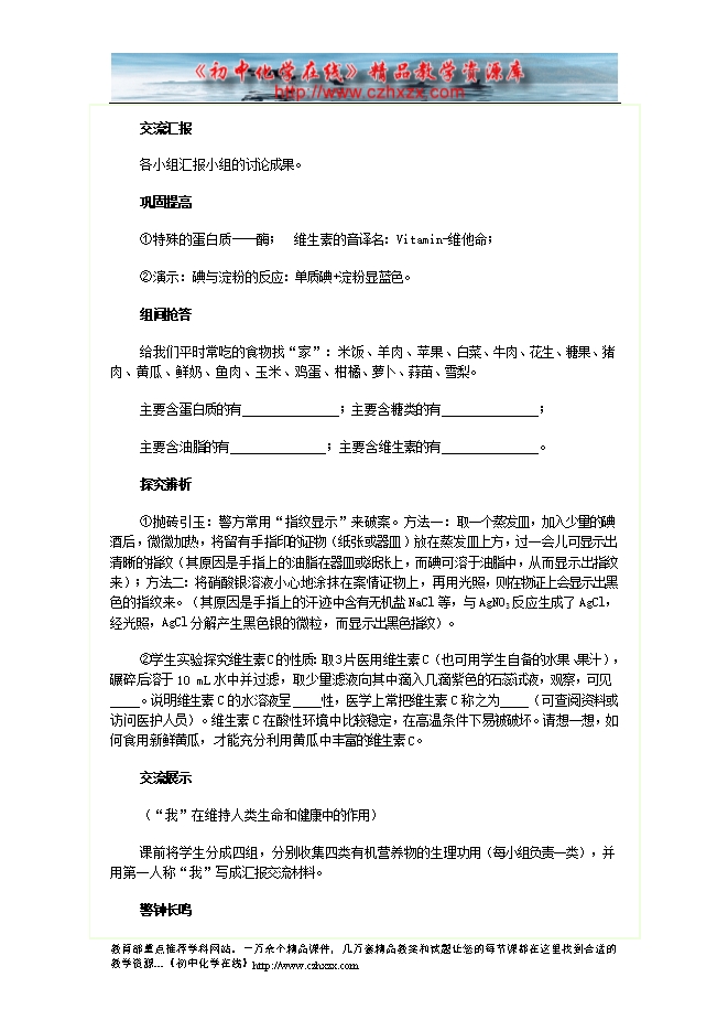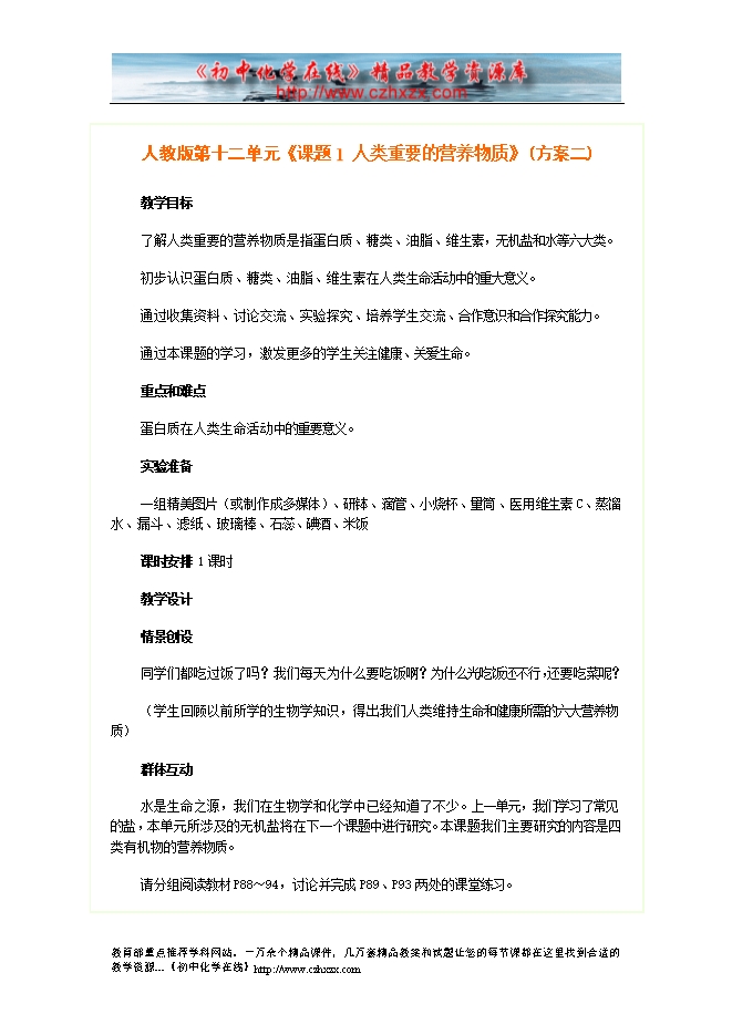 人教版第十二单元《课题1 人类重要的营养物质》教案(方案二)