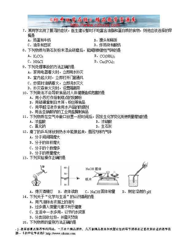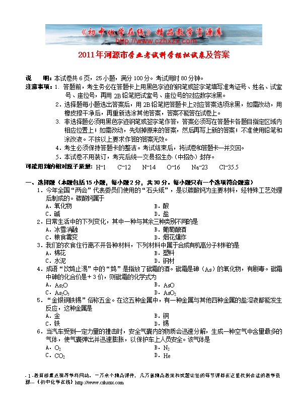 - 下一份试卷:2011年广东省梅州市中考一模化学试题及答案