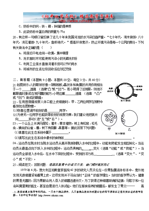 - 下一份试卷:2011年河北省中考一模化学试题及答案
