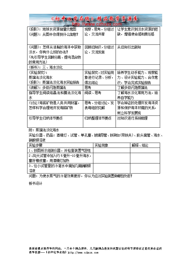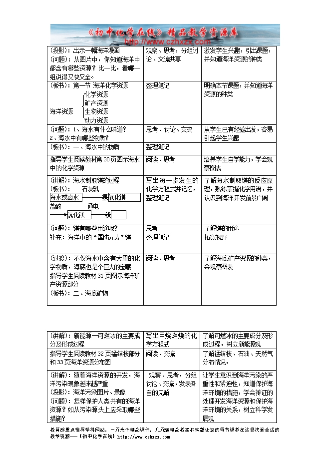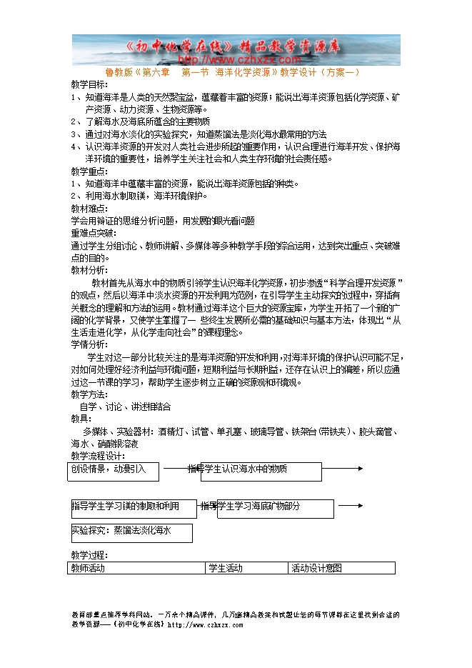 鲁教版《第八章第一节 海洋化学资源》教学设计(方案一)