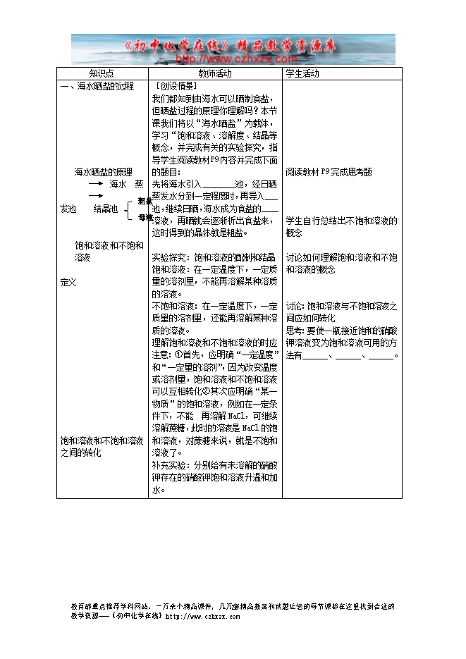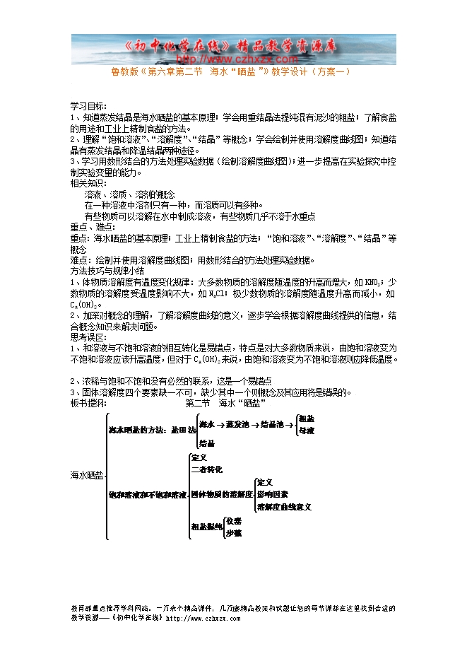 鲁教版《第八章第二节 海水“晒盐”》教学设计(方案一)