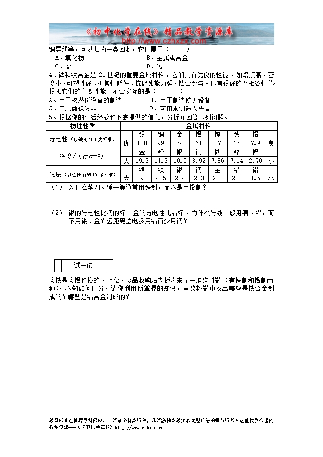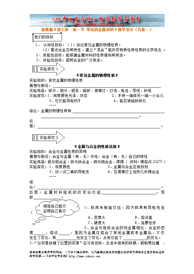 鲁教版《第九章第一节 常见的金属材料》教学设计(方案一)