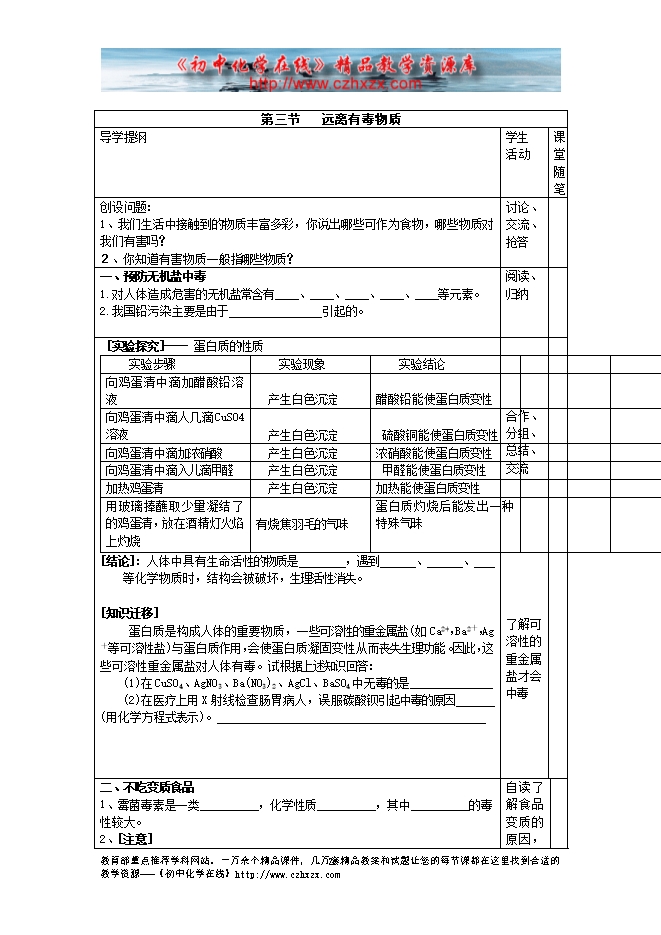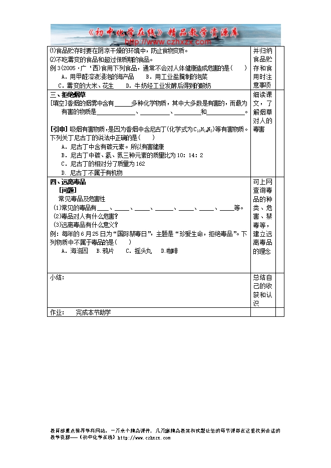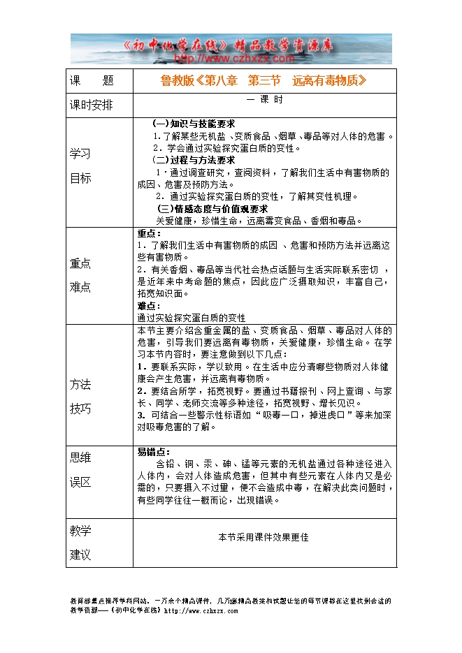 鲁教版《第十章第三节 远离有毒物质》教学设计(方案一)