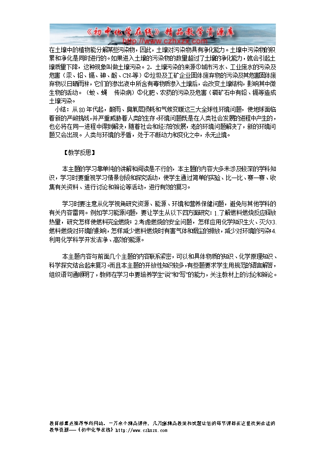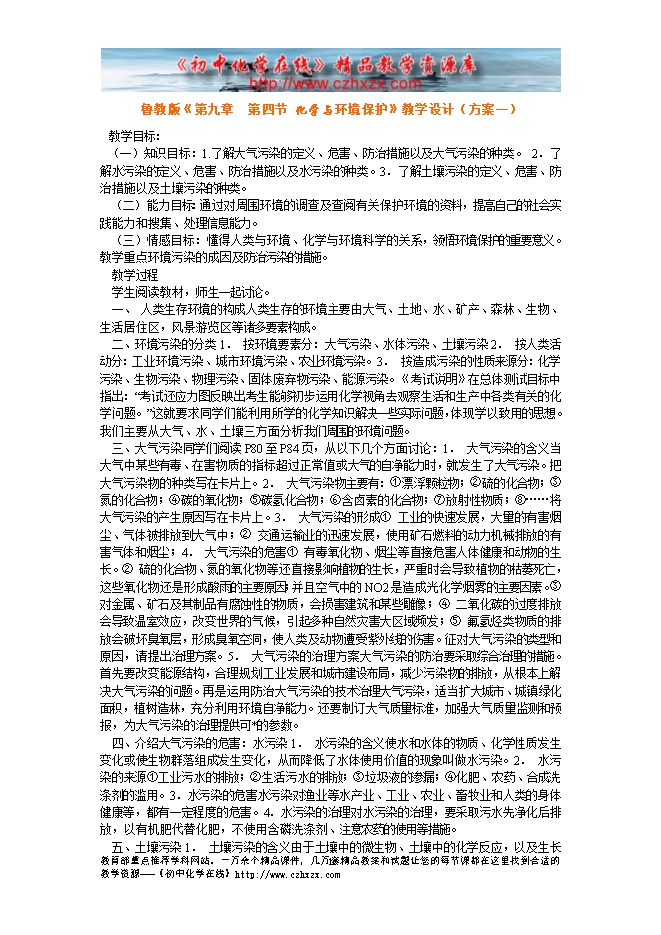 鲁教版《第十一章第四节 化学与环境保护》教学设计(一)