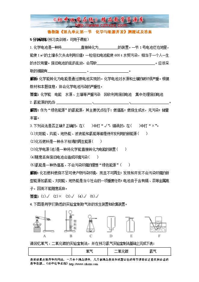 鲁教版《第十一章第一节 化学与能源开发》测题试及答案