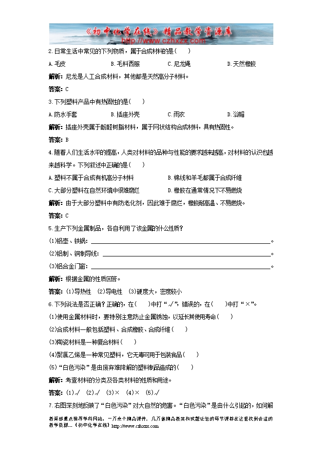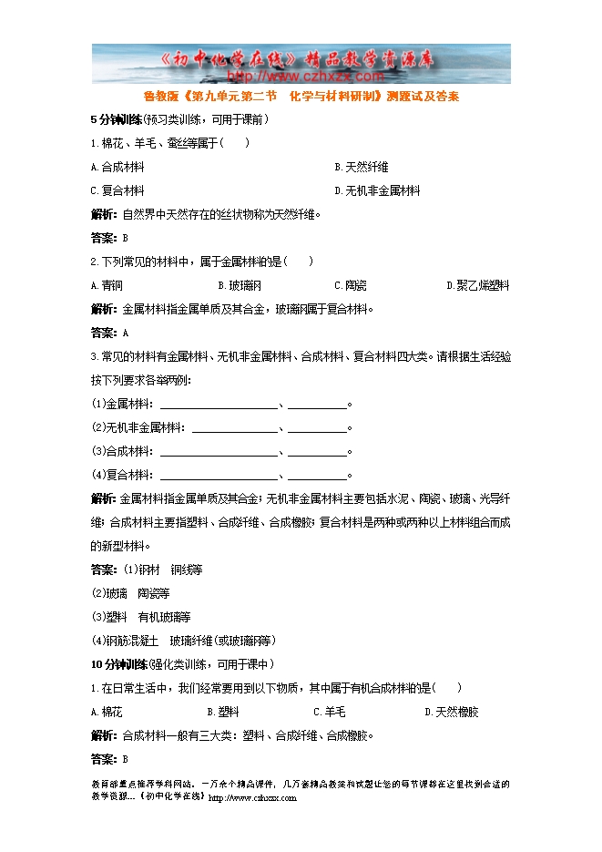 鲁教版《第十一章第二节 化学与材料研制》测题试及答案