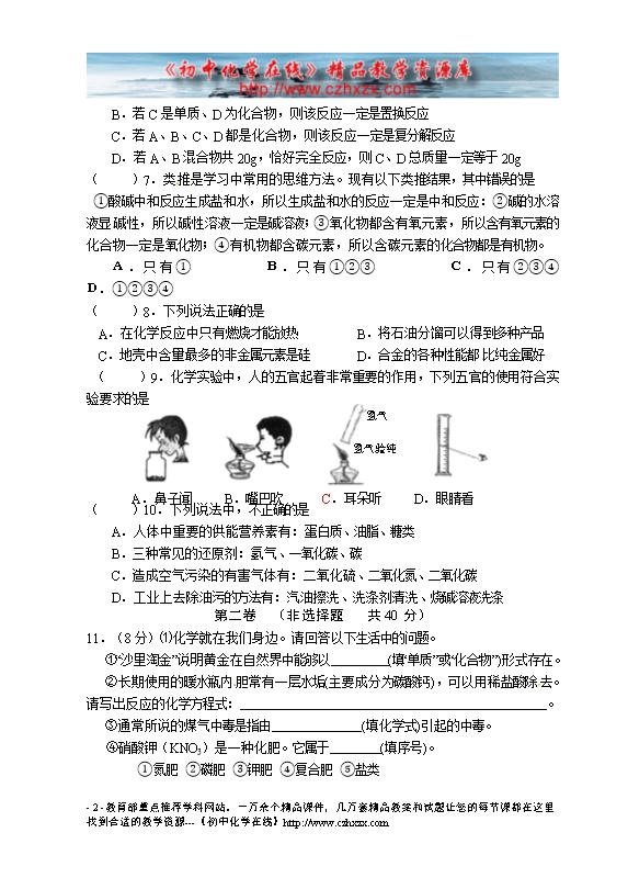 - 上一份试卷:2011年河北省中考一模化学试题及答案