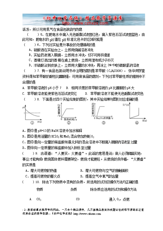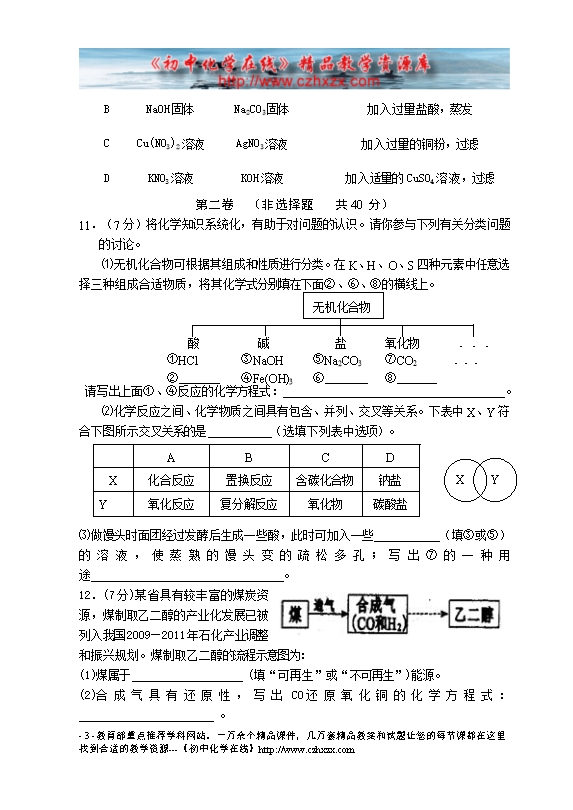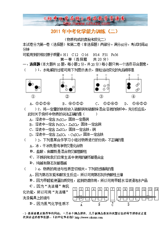 - 下一份试卷:2011年中考化学能力训练及答案(三)