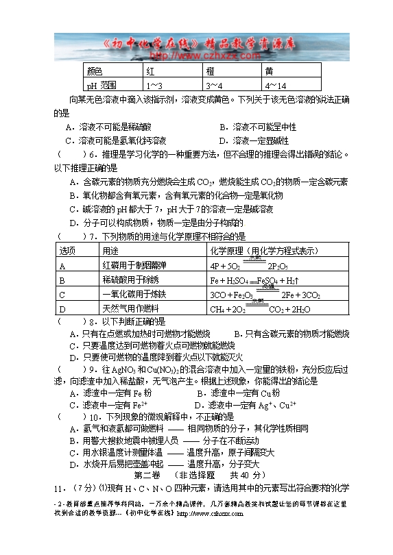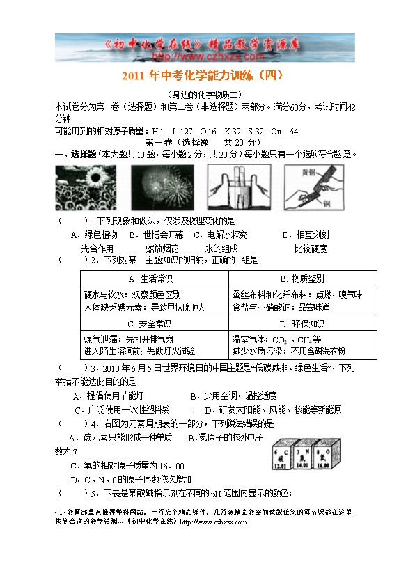 - 下一份试卷:2011年中考化学能力训练及答案(五)