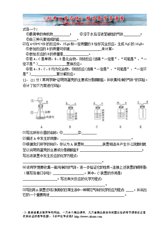 - 上一份试卷:2011年中考化学能力训练及答案(三)
