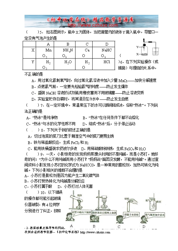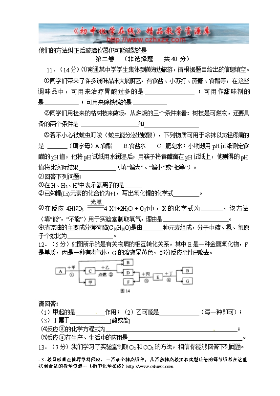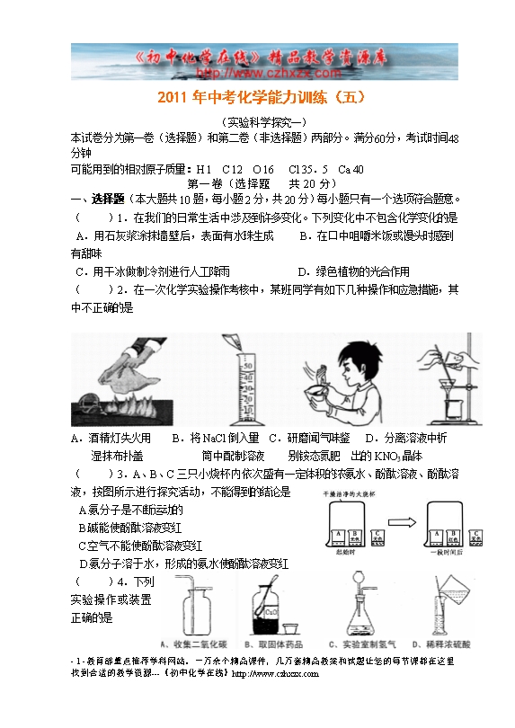 - 下一份试卷:2011年中考化学能力训练及答案(六)