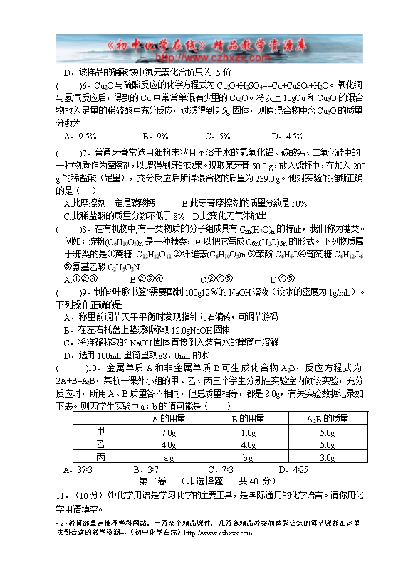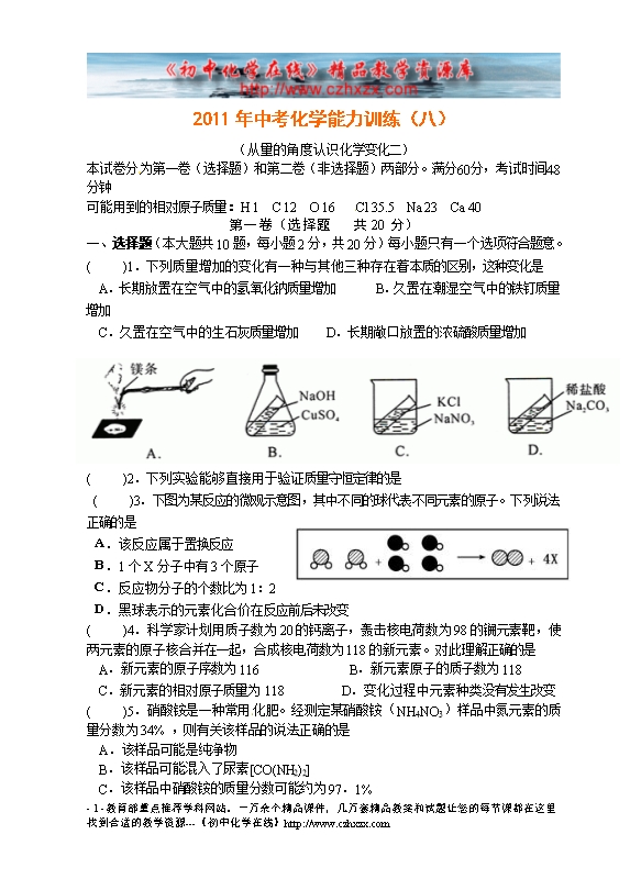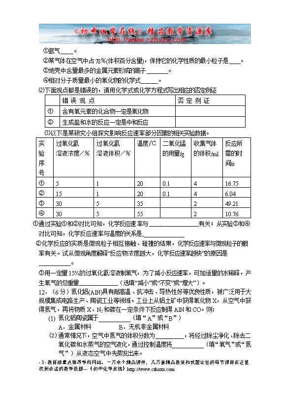 - 上一份试卷:2011年中考化学能力训练及答案(七)