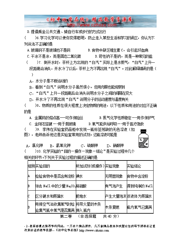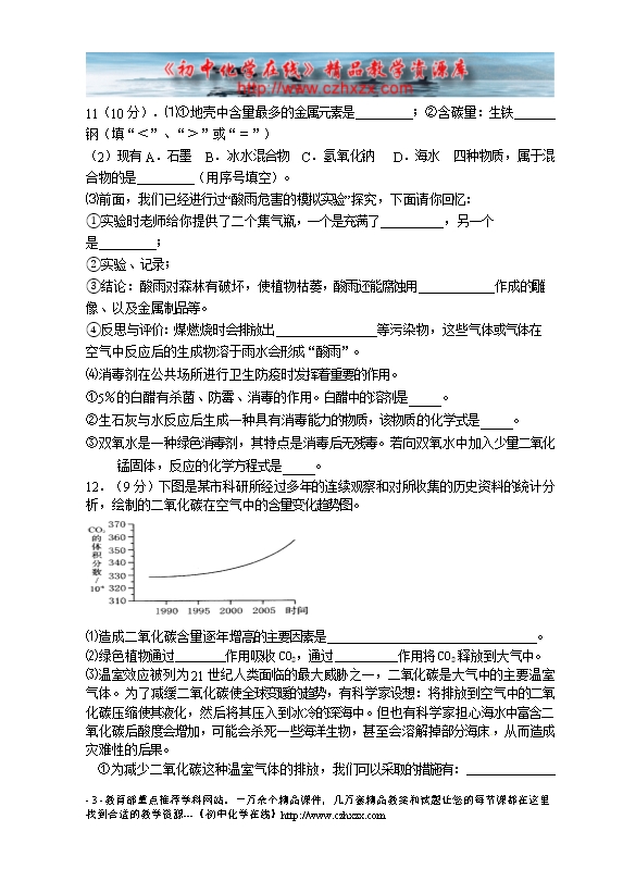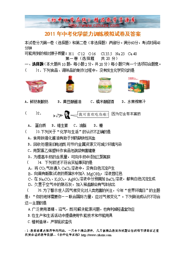 - 上一份试卷:2011年中考化学能力训练及答案(八)