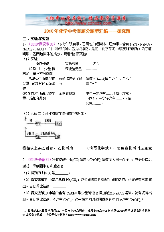 - 上一份试卷:2010年化学中考真题分题型汇编――填空题