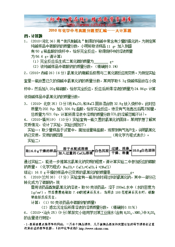 - 上一份试卷:2010年化学中考真题分题型汇编――探究题