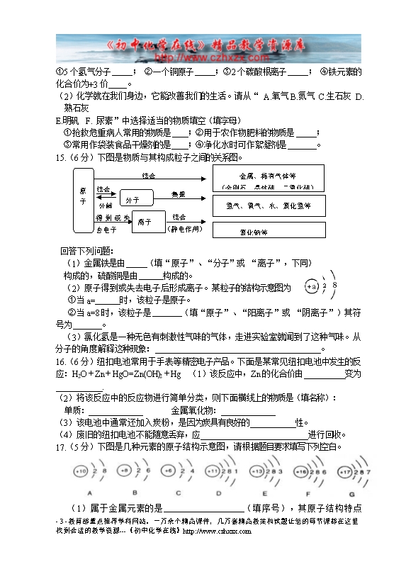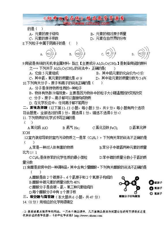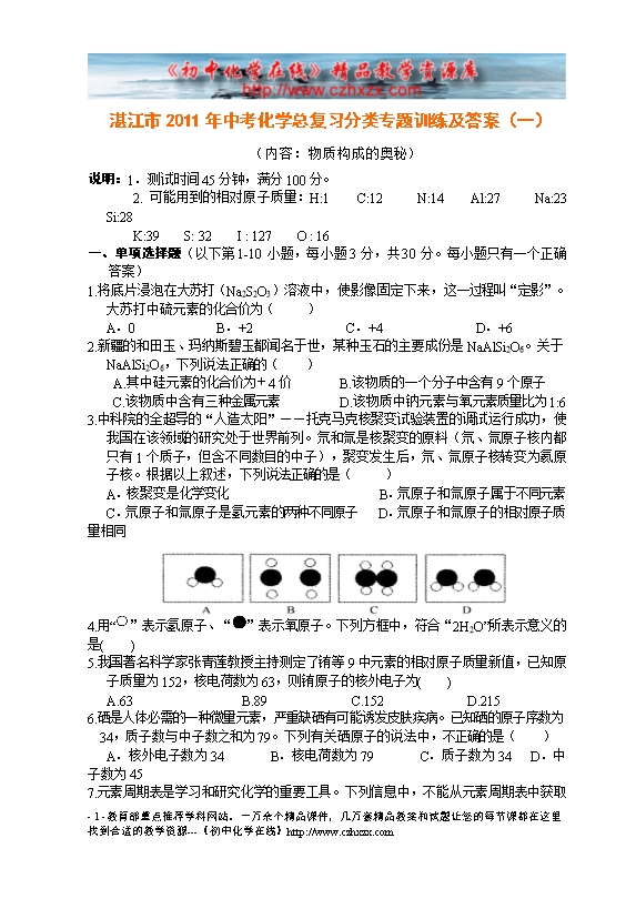 - 下一份试卷:湛江市2011年中考化学总复习分类专题训练及答案(二)