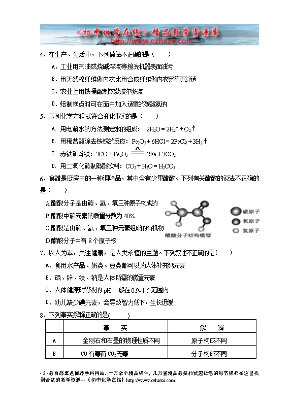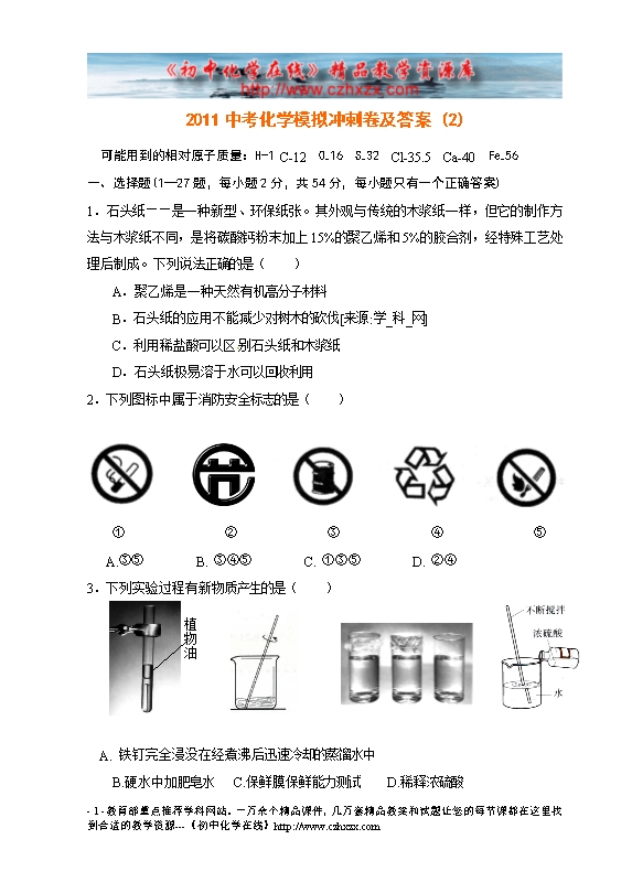 - 下一份试卷:2011中考化学模拟冲刺卷及答案 (3)