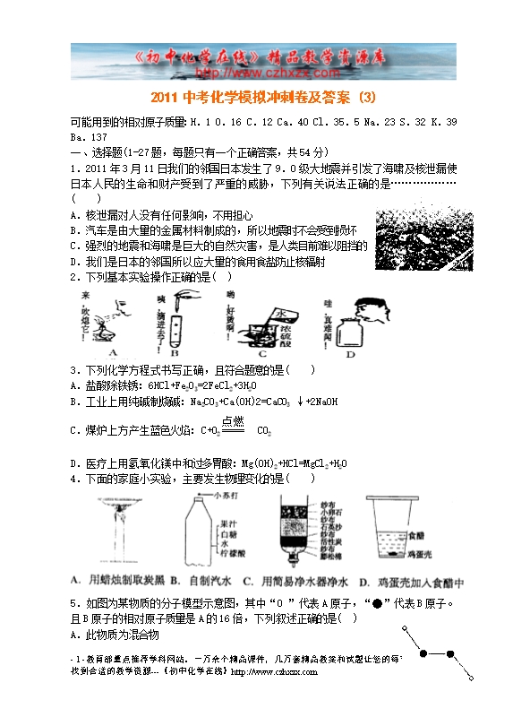 - 下一份试卷:2011中考化学模拟冲刺卷及答案 (4)