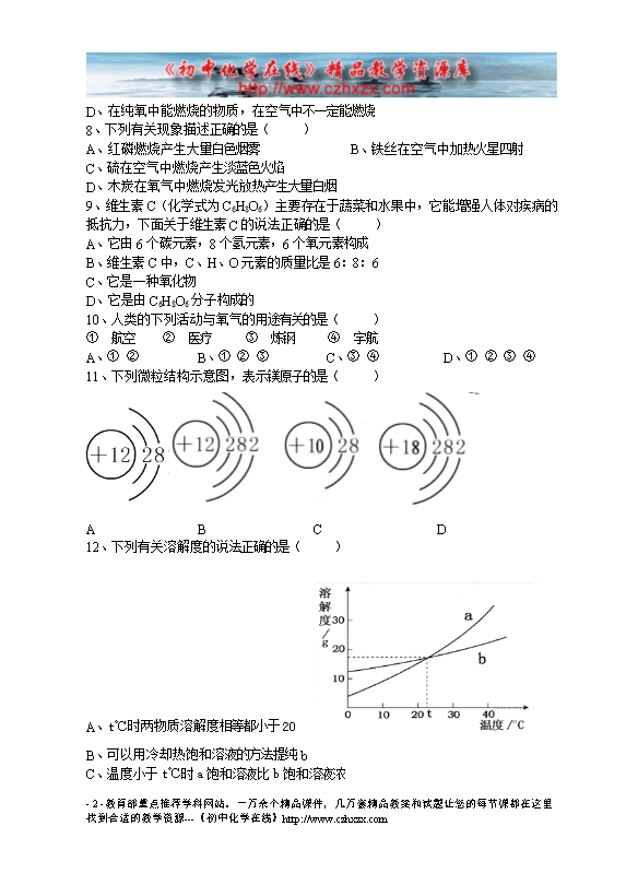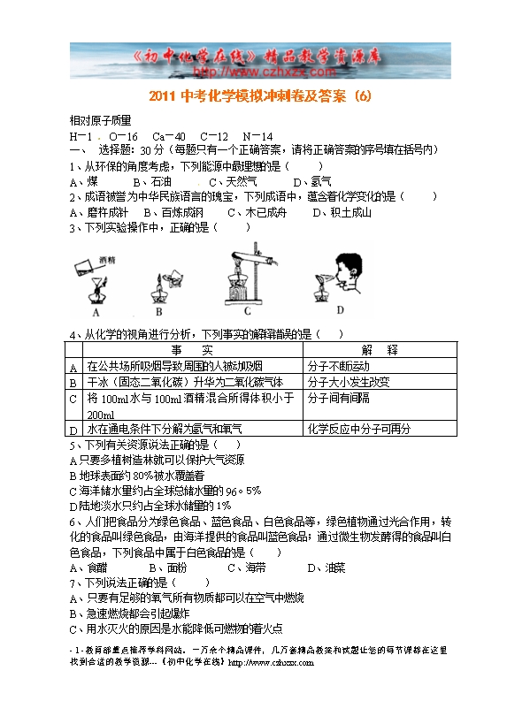 - 下一份试卷:2011中考化学模拟冲刺卷及答案 (7)