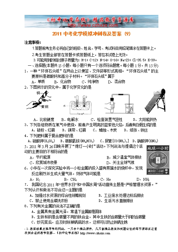 - 下一份试卷:2011中考化学模拟冲刺卷及答案 (10)