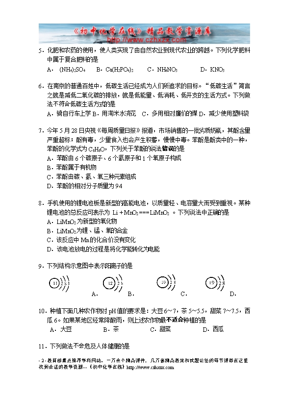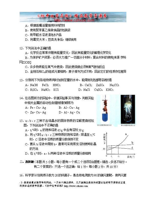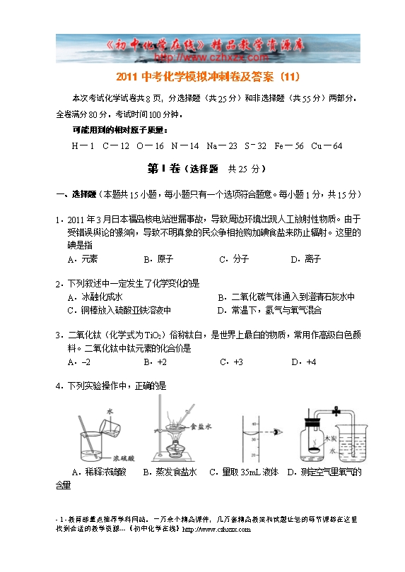 - 下一份试卷:2011中考化学模拟冲刺卷及答案 (12)