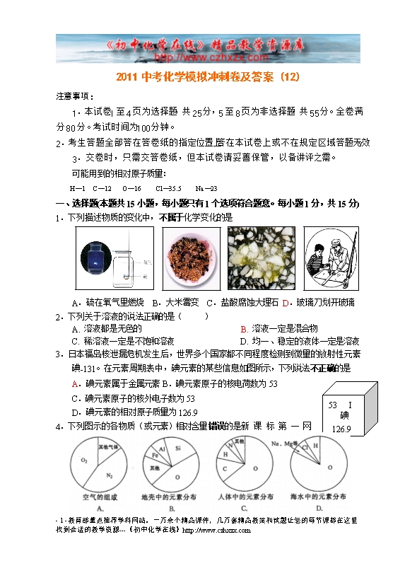 - 上一份试卷:2011中考化学模拟冲刺卷及答案 (11)