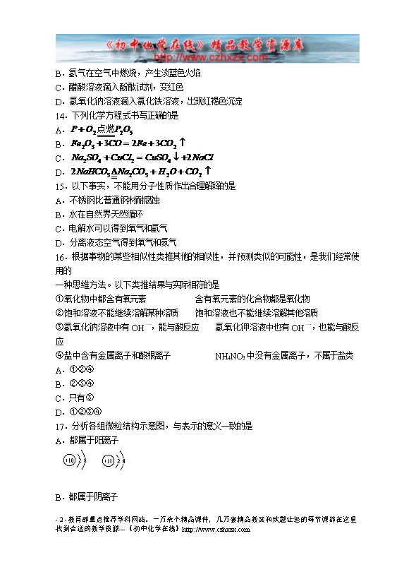 - 下一份试卷:2011年广东省初中毕业生学业考试化学试题及答案