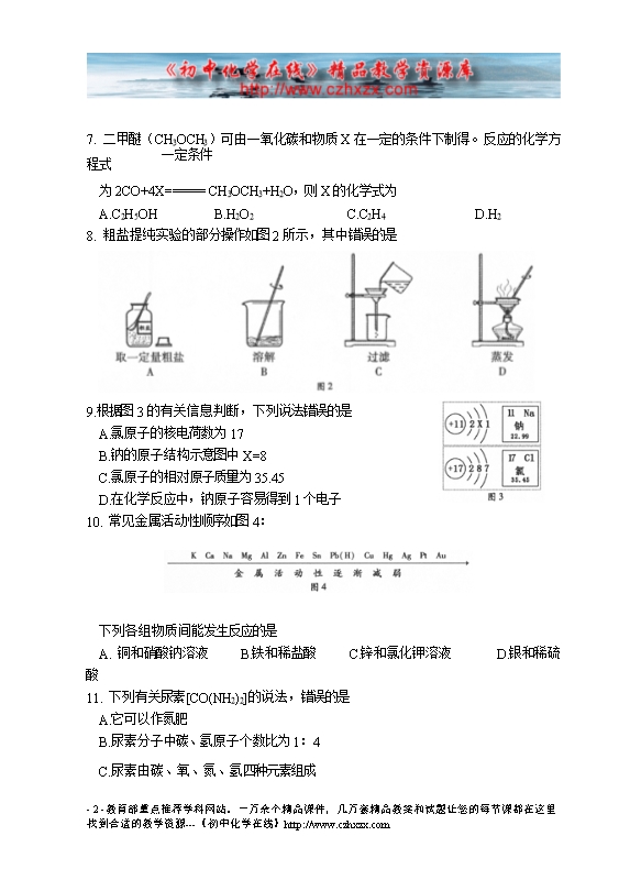 - 上一份试卷:2011年广东省初中毕业生学业考试化学试题及答案