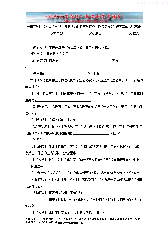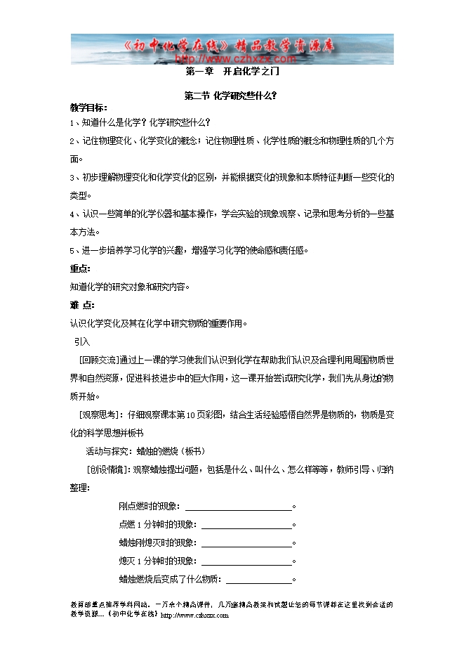 沪教版第一章《第二节 化学研究些什么?》教学设计(方案二)