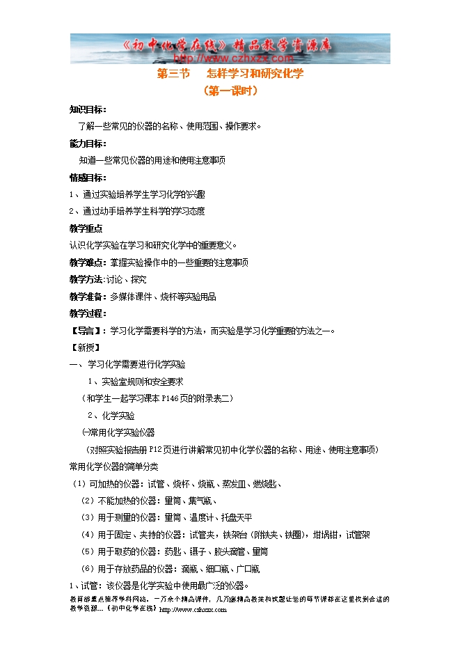沪教版第一章《第三节 怎样学习和研究化学》教学设计1第1课时