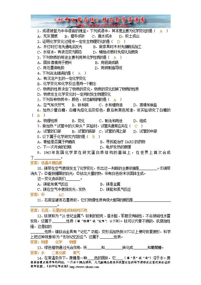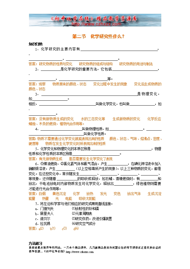 沪教版第一章《第二节 化学研究些什么?》学案(方案一)