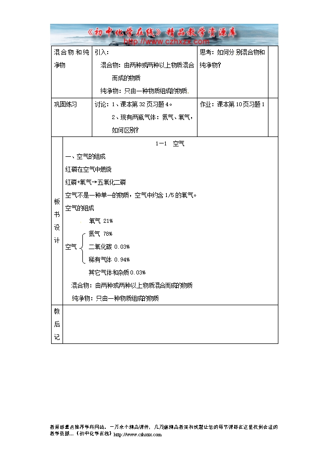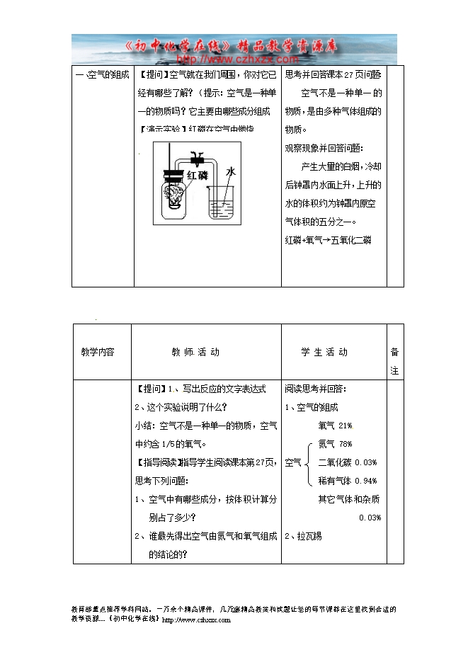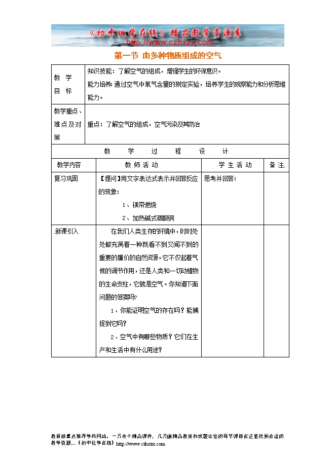沪教版第二章 由多种物质组成的空气》教学设计(旧方案一)