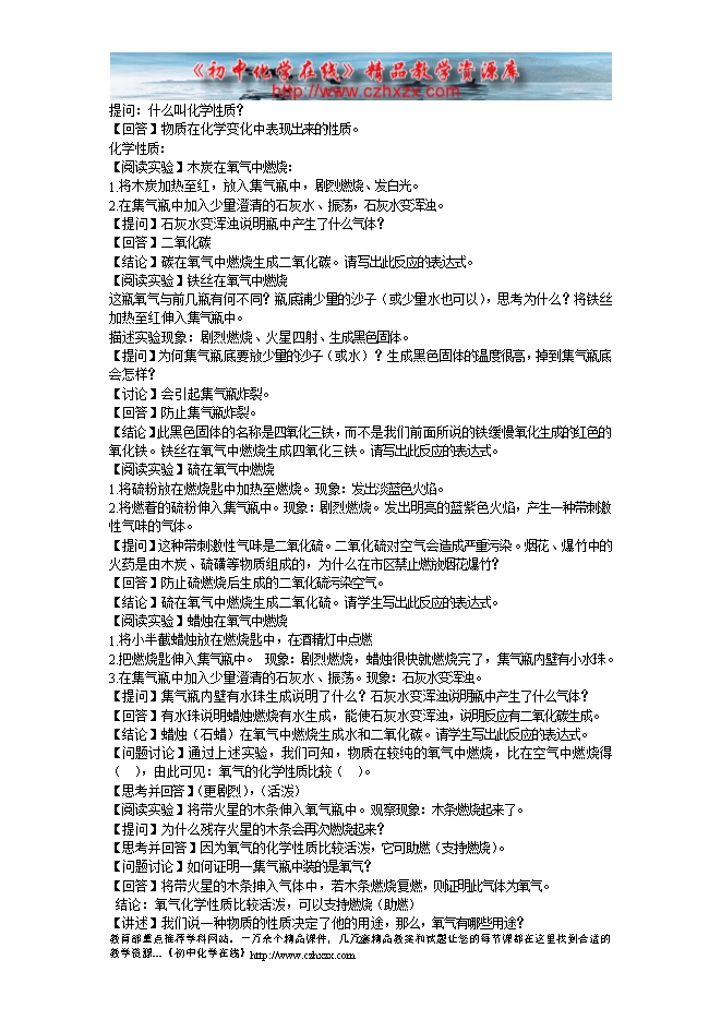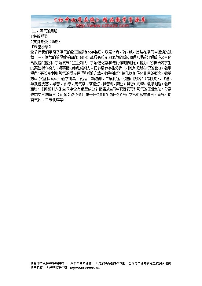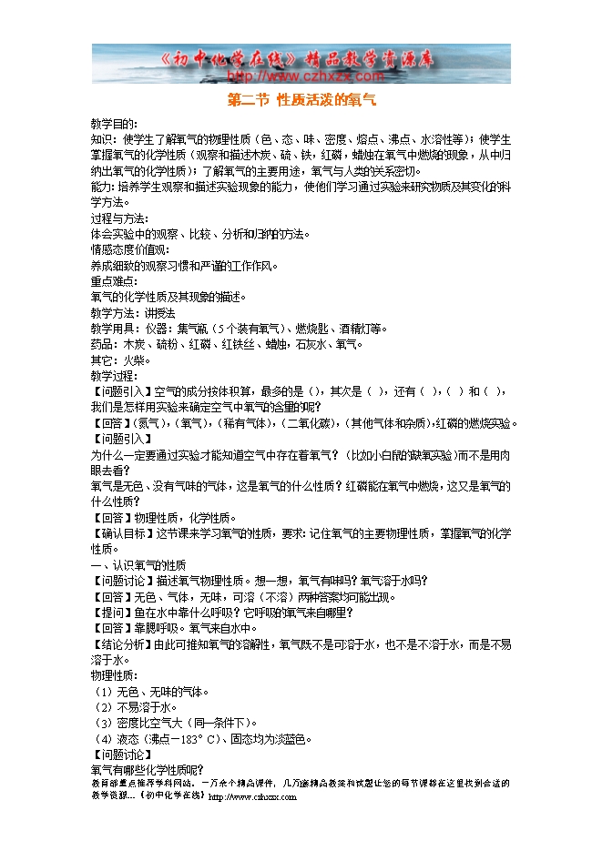 沪教版第二章《第一节 性质活泼的氧气》教学设计(方案一)
