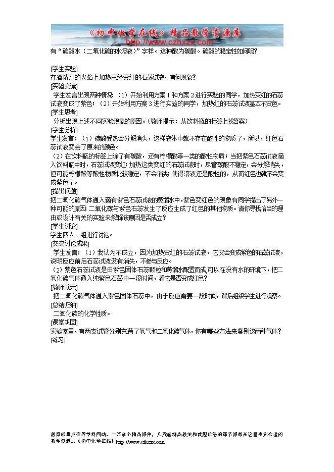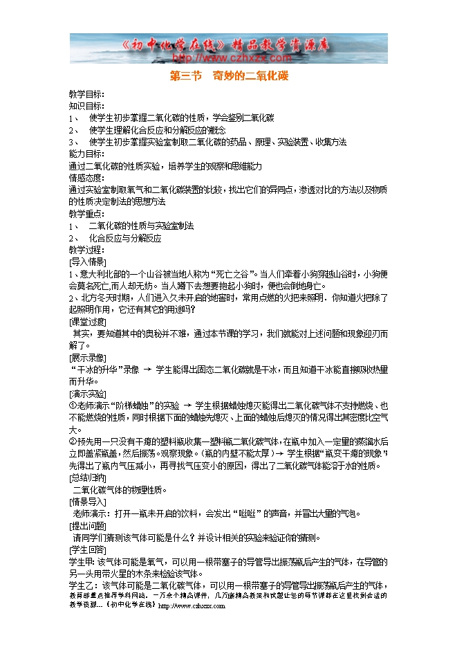 沪教版第二章《第二节 奇妙的二氧化碳》教学设计(方案一)