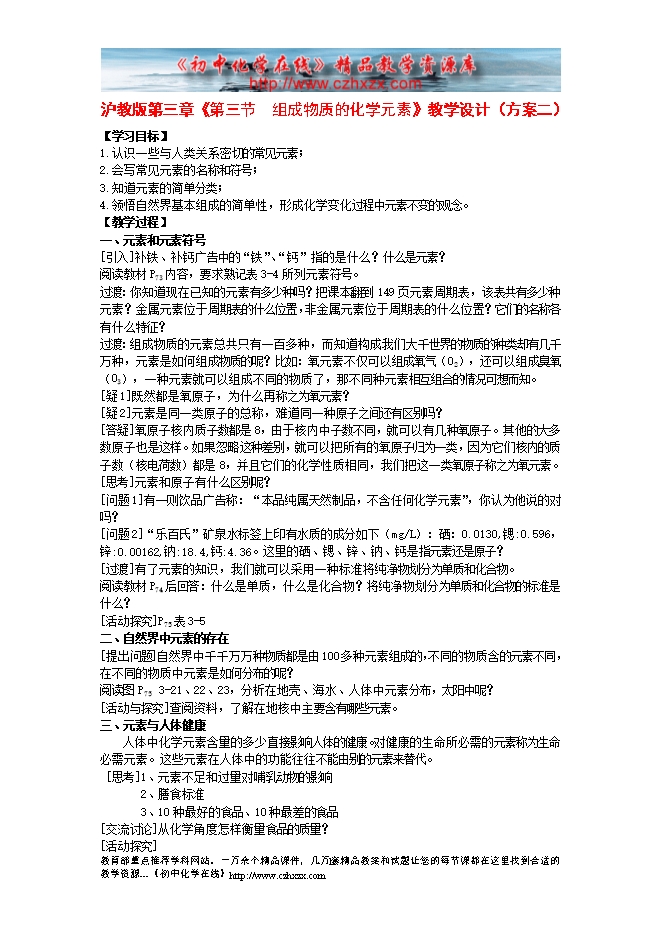 沪教版第三章《第二节 组成物质的化学元素》教学设计(方案二)