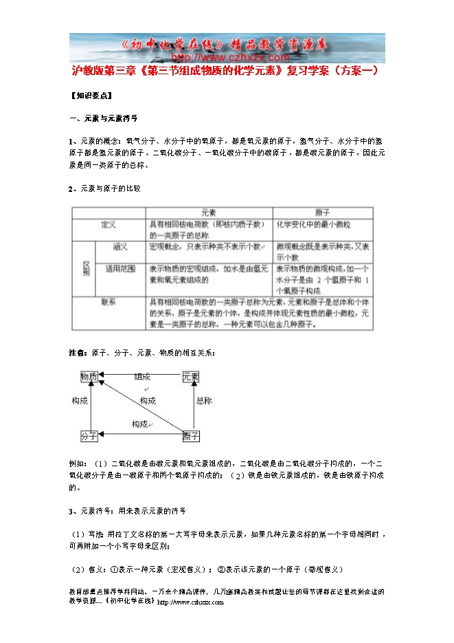 沪教版第三章《第二节组成物质的化学元素》复习学案(方案一)