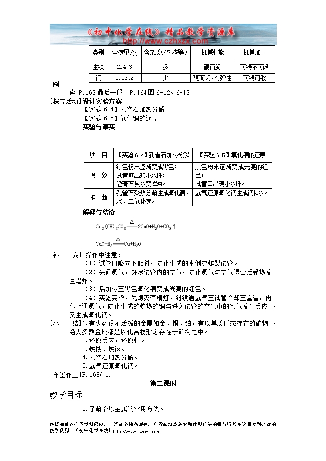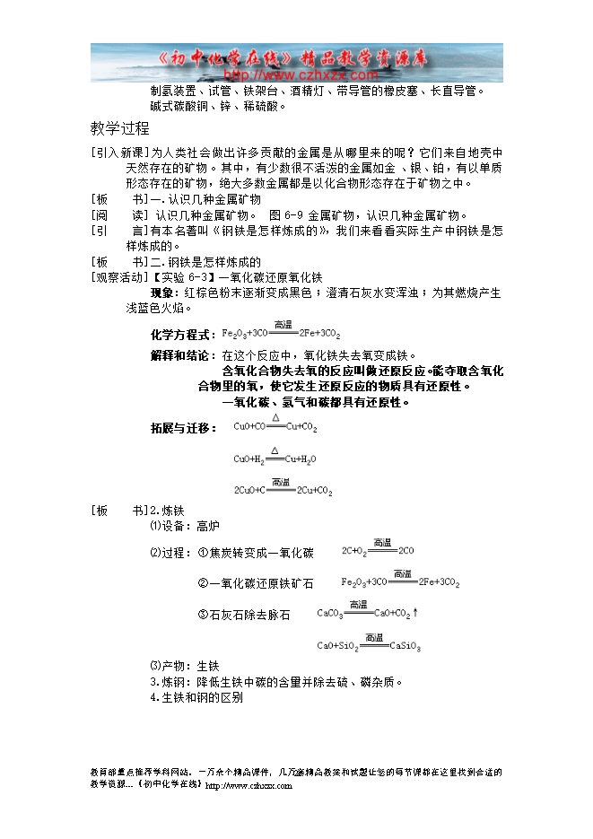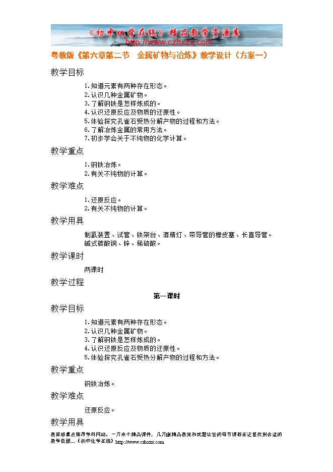 粤教版《第六章第三节 金属矿物与冶炼》教学设计(方案一)