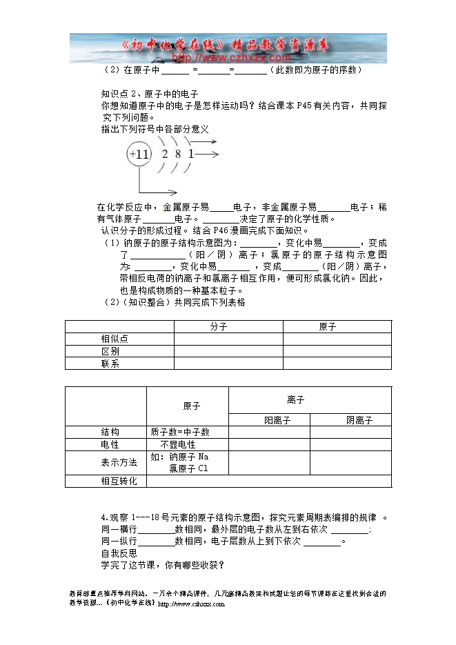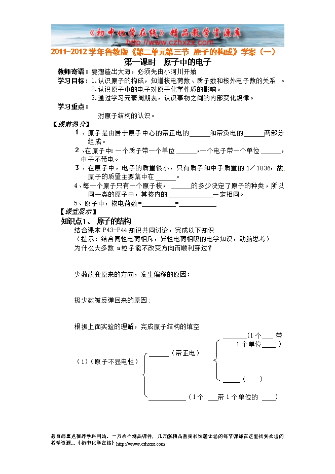 2011-2012学年鲁教版《第二章第三节 原子的构成》学案(一)