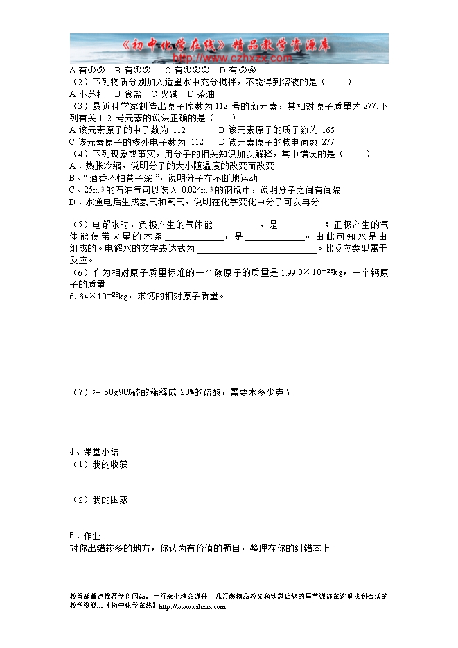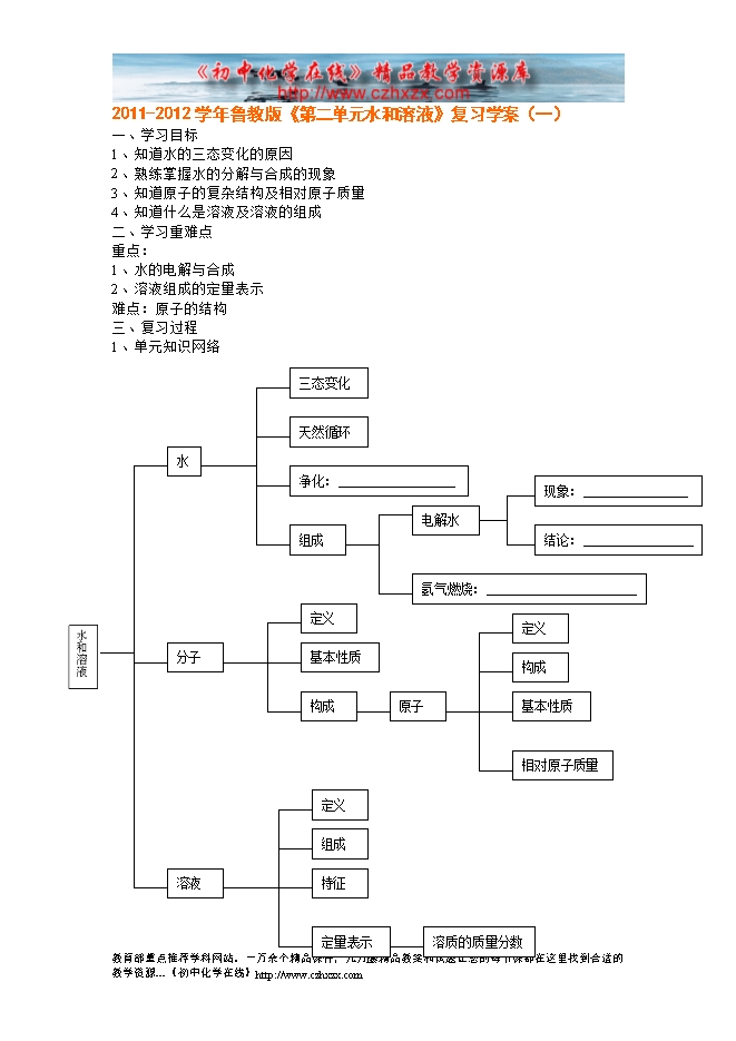 2011-2012学年鲁教版《第三章 溶液》复习学案(一)