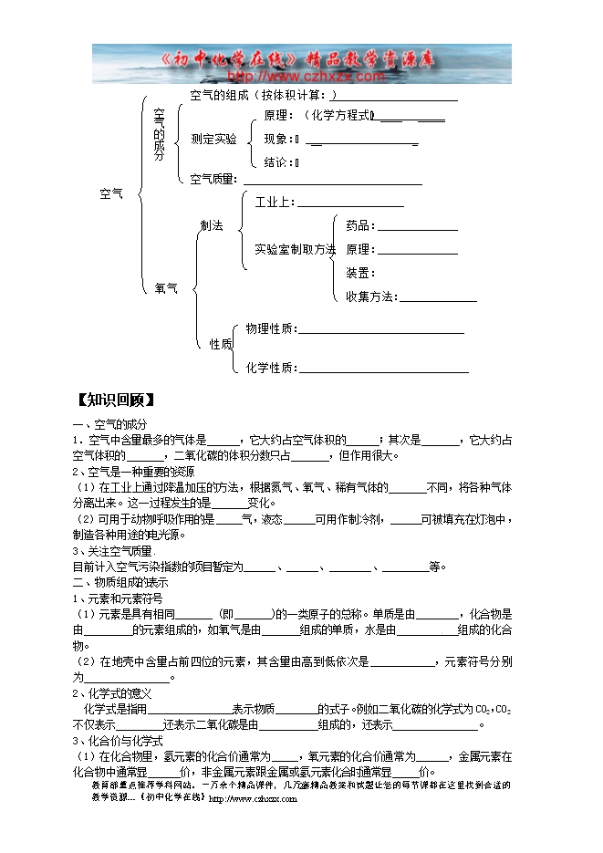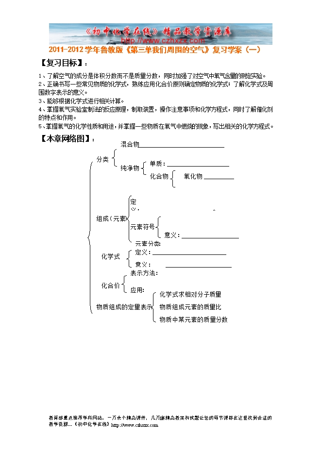 2011-2012学年鲁教版《第四章 我们周围的空气》复习学案(一)