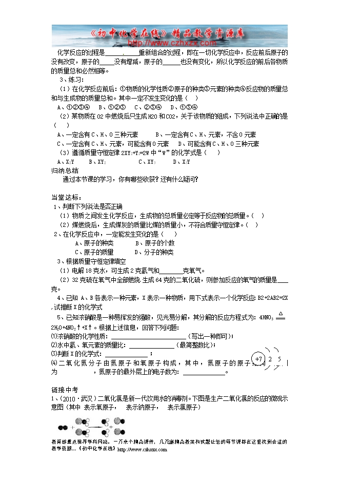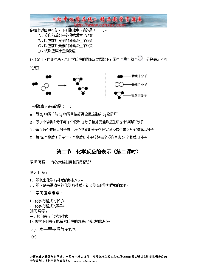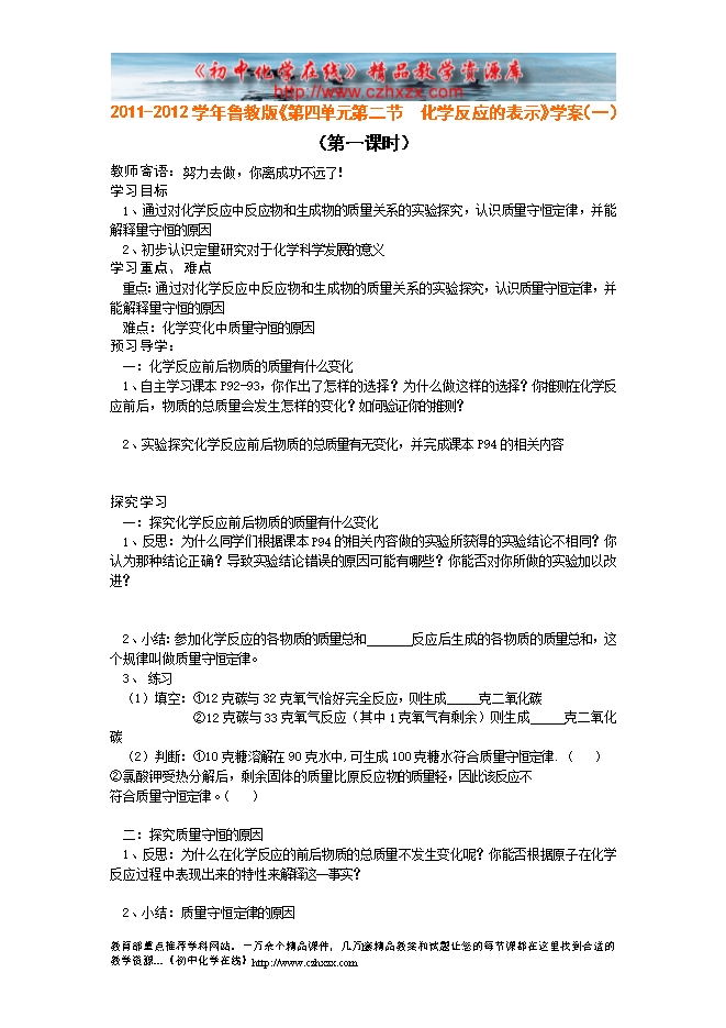 2011-2012学年鲁教版《第五章第二节 化学反应的表示》学案(一)