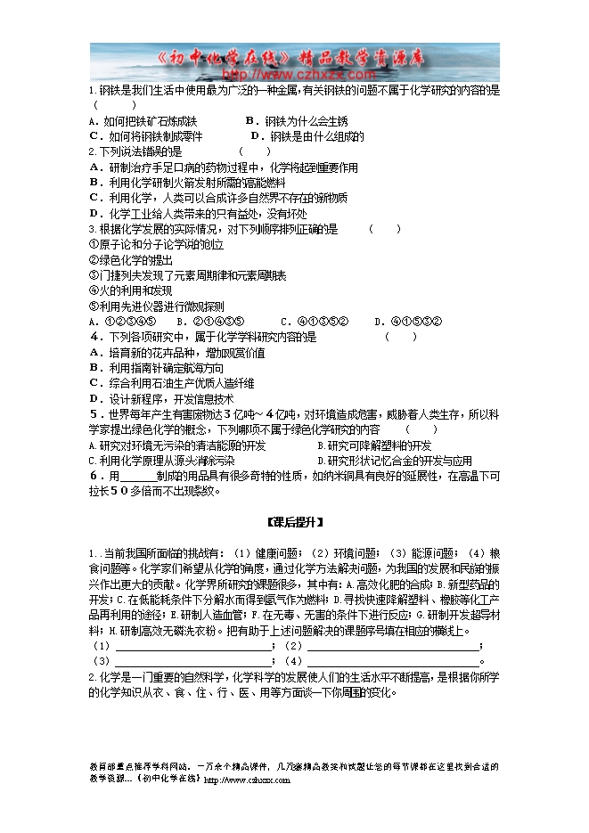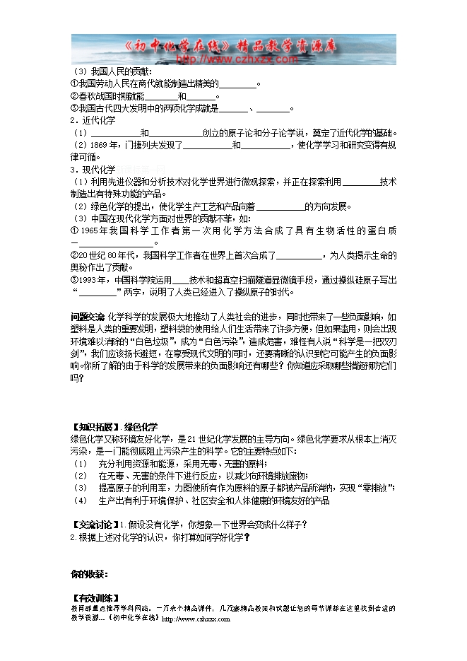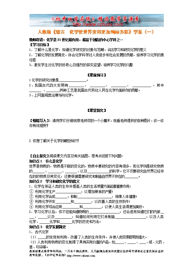 人教版《绪言 化学使世界变得更加绚丽多彩》学案(一)