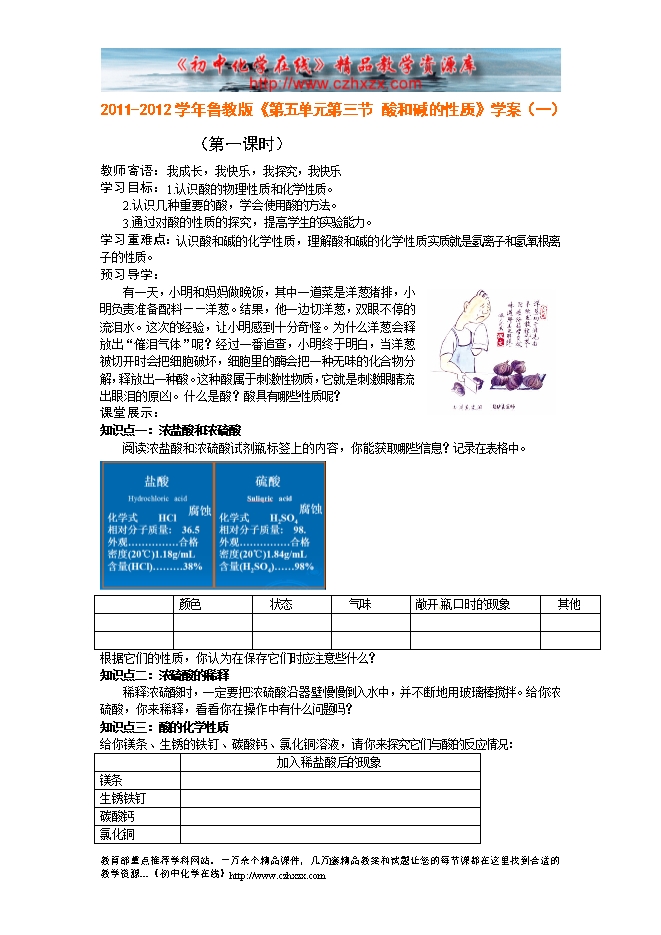 2011-2012学年鲁教版《第五单元第三节 酸和碱的性质》学案(旧)