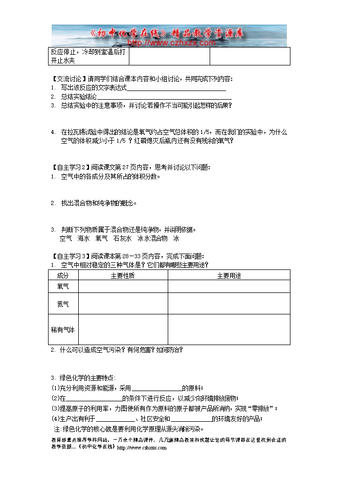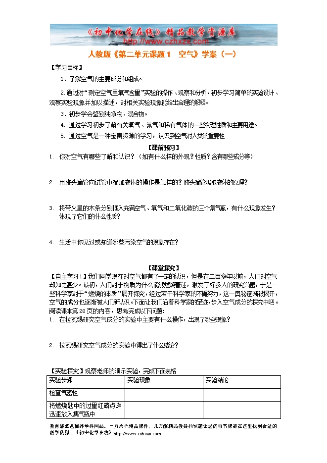 - 下一份资料:人教版《第二单元课题2 氧气》学案(一)