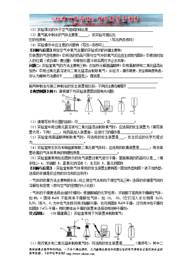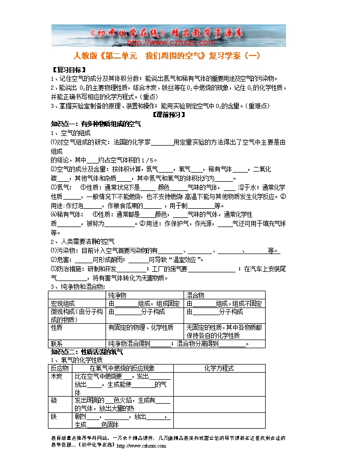 人教版《第二单元 我们周围的空气》复习学案(一)