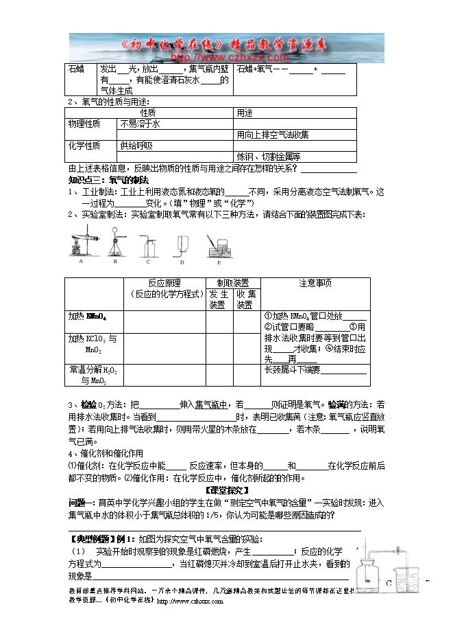 - 上一份资料:人教版《第二单元课题3 制取氧气》学案(一)