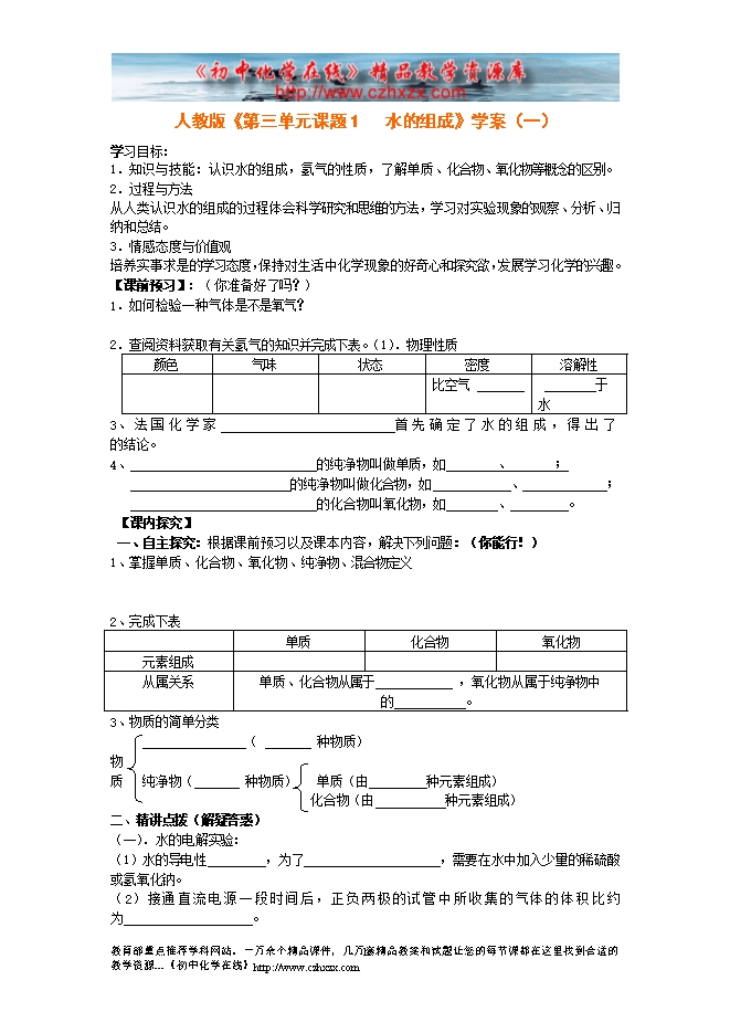 - 下一份资料:人教版《第三单元课题1 分子和原子》学案(一)