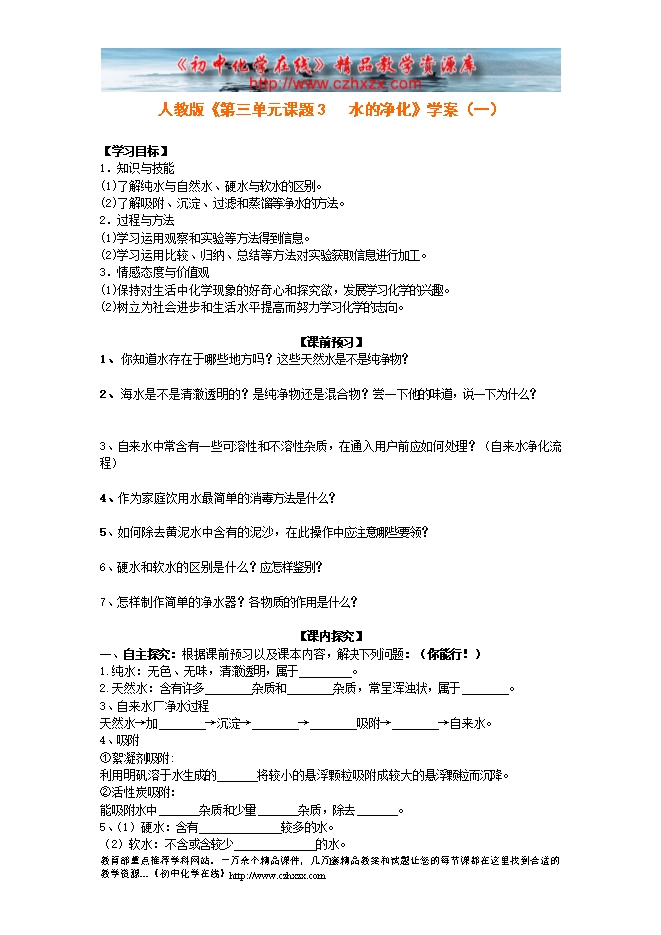 - 下一份资料:人教版《第四单元课题1 爱护水资源》学案(一)